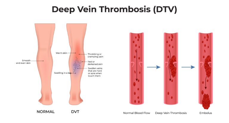 DVT develops when blood flow slows down or becomes stagnant. Common causes and risk factors include